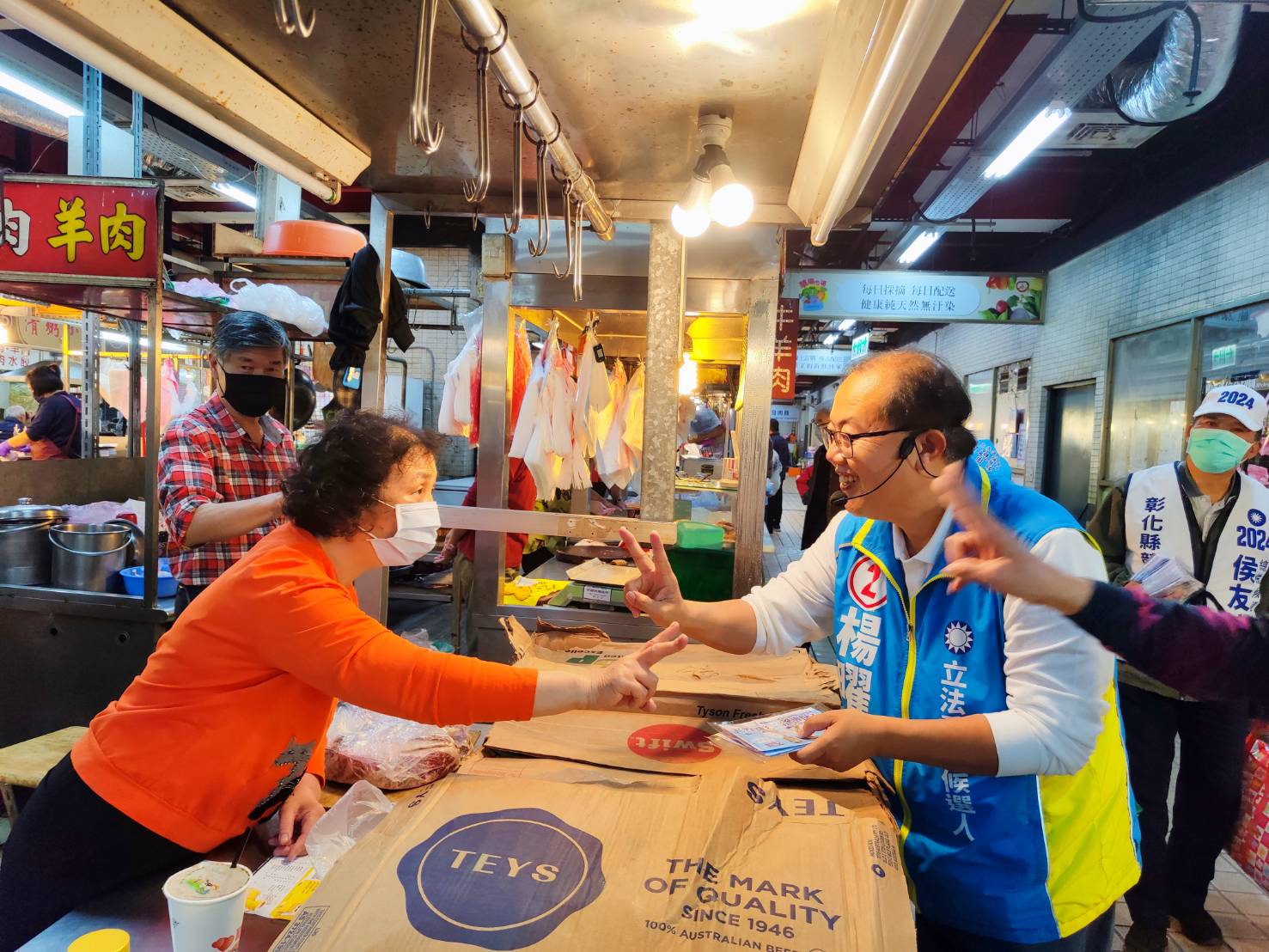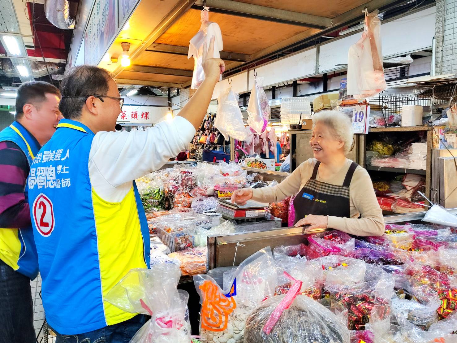 ▲彰化縣第二選區立委候選人楊曜聰走訪華陽市場與民權市場,與攤商及市民深入互動,民眾紛紛表達對其支持與祝福,盼望他能在選戰中取得高票當選。