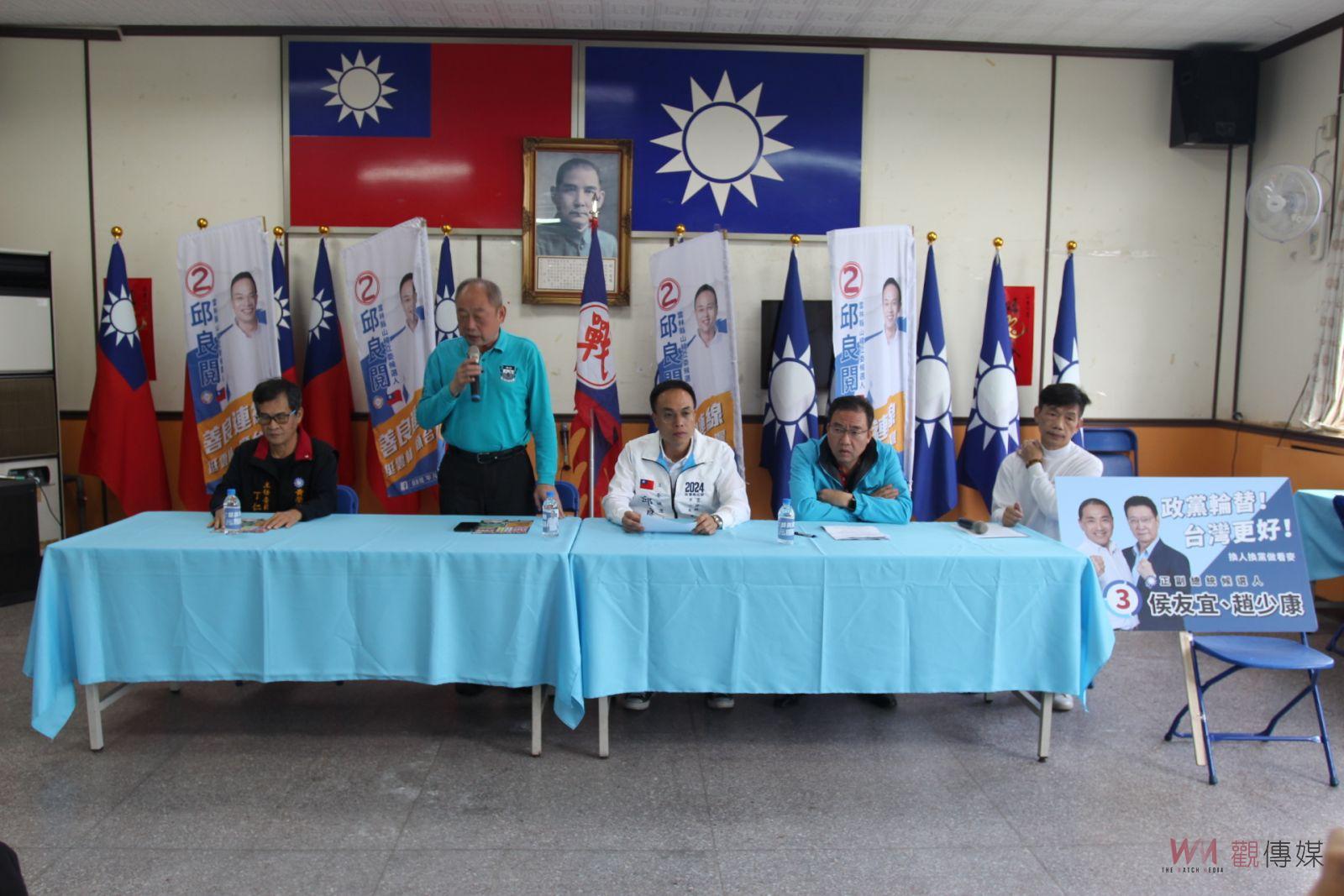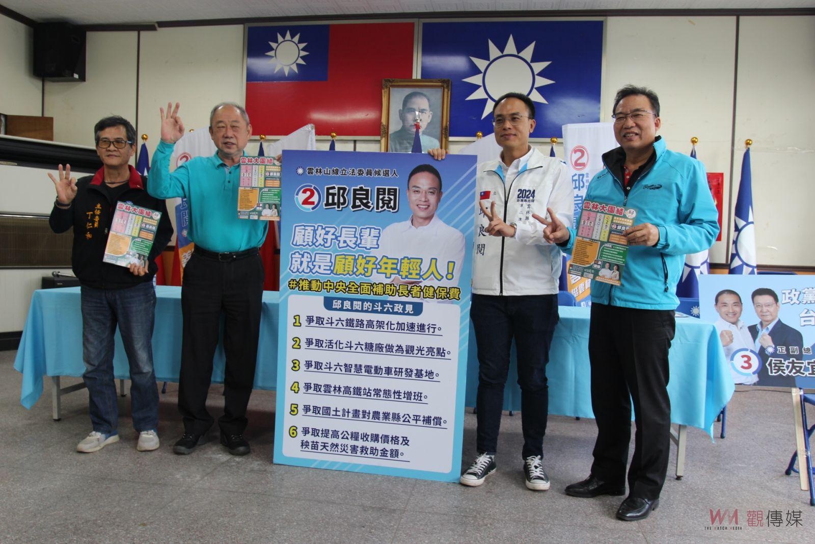 ▲國民黨雲林黨部主委陳瑞雄、縣農會總幹事陳志揚和黃復興黨部主委丁仁等大力推荐第二選區立委候選人邱良閱。