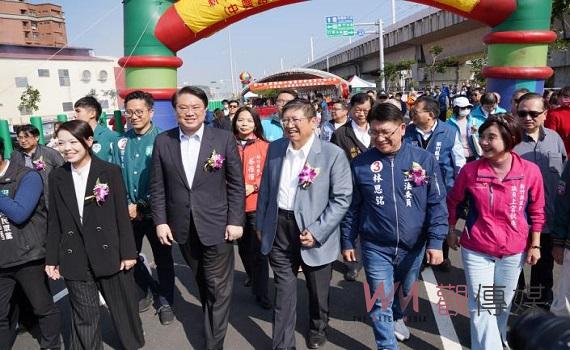 (觀傳媒新竹新聞)【記者金祐妤/新竹報導】全長4.3公里的新竹縣高鐵橋下聯絡道延伸至竹科工程,分三期施工歷經將近10年時間,花費35.74億元,在中央與地方攜手合作下,「最後一哩路」第三期中興路至力行路今(2)日終於通車,內政部長林右昌、新竹縣長楊文科、新竹市長高虹安及竹科管理局長王永壯等人到場剪綵,一同大步邁進見證歷史性一刻。
