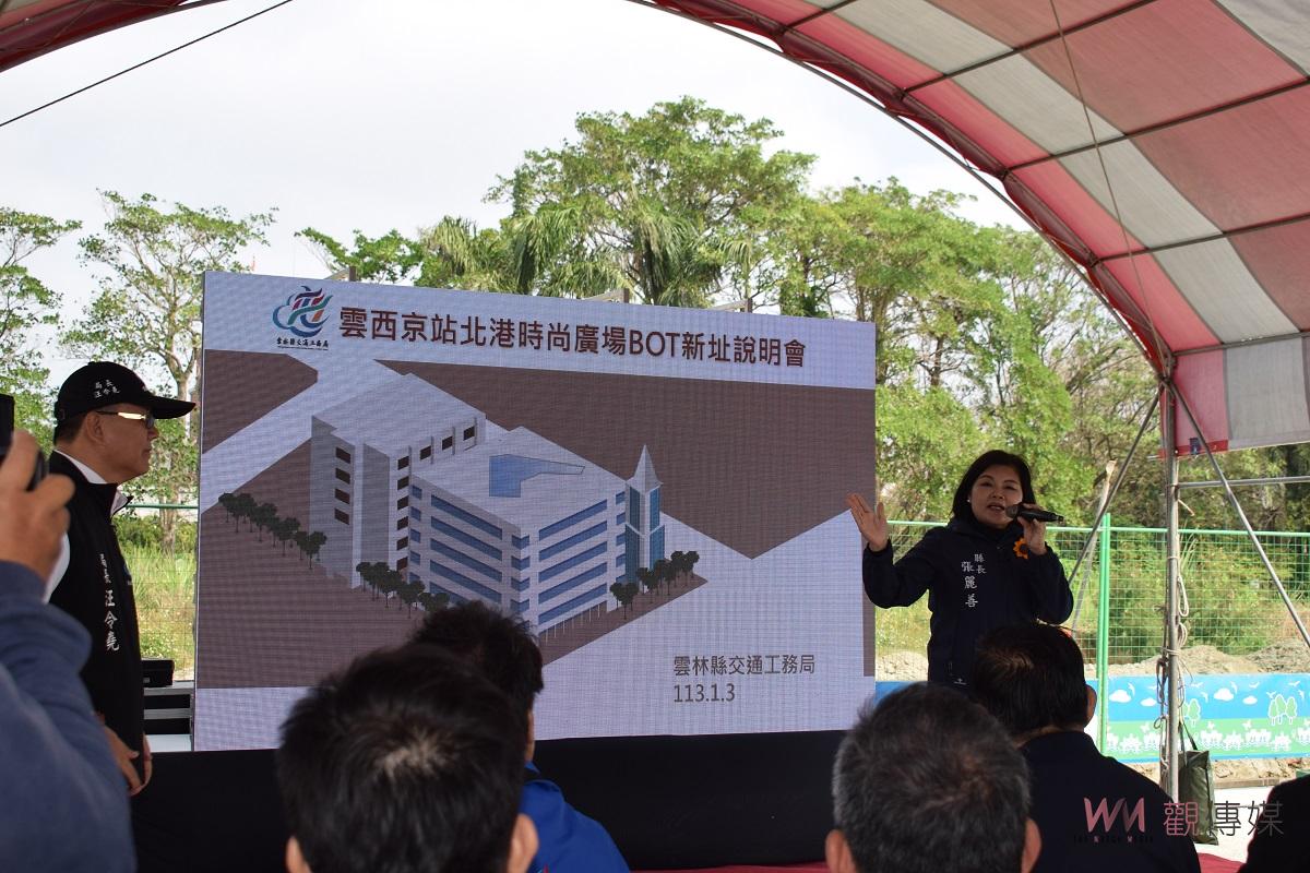 ▲雲林縣府召開「雲西京站北港時尚廣場BOT新址說明會」,重啟北港轉運站規劃案。縣長張麗善致詞。