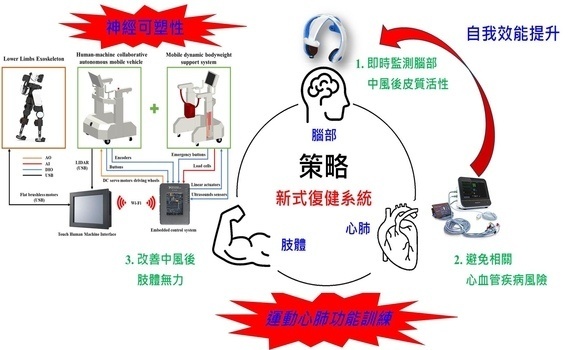 李聯旺副教授與其團隊主要聚焦於腦中風患者的特殊復健需求,整合了無線生理監測、腦電回饋、下肢外骨骼、動態減重、人機協同移動裝置以及安全控制系統,打造了一套多功能復健系統。這套系統不僅有助於中風患者體能和肌力的恢復,還能有效改善他們的心理狀態,如抑鬱情緒,並提高自我效能感。多功能模式融合了腦波訊號監控,能夠實時反映患者的狀態。
