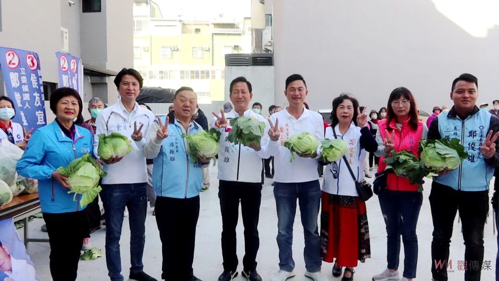 (觀傳媒彰化新聞)【記者陳雅芳/彰化報導】最近氣溫下滑,高麗菜進入盛產期,彰化第四選區國民黨立委候選人鄭俊雄,今(9)日下午在競選總部發起「送菜迎侯康‧民生有靠山」活動,憑發票就能換1顆高麗菜,以實際行動力挺農民,鄭俊雄說,讓民眾做公益送愛心的同時,還可以享用美味農產品,發票將捐贈給弱勢社福機構,吸引大批民眾響應。
