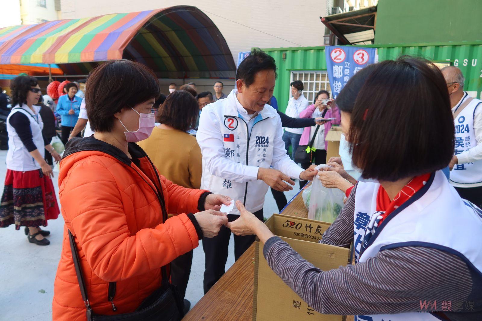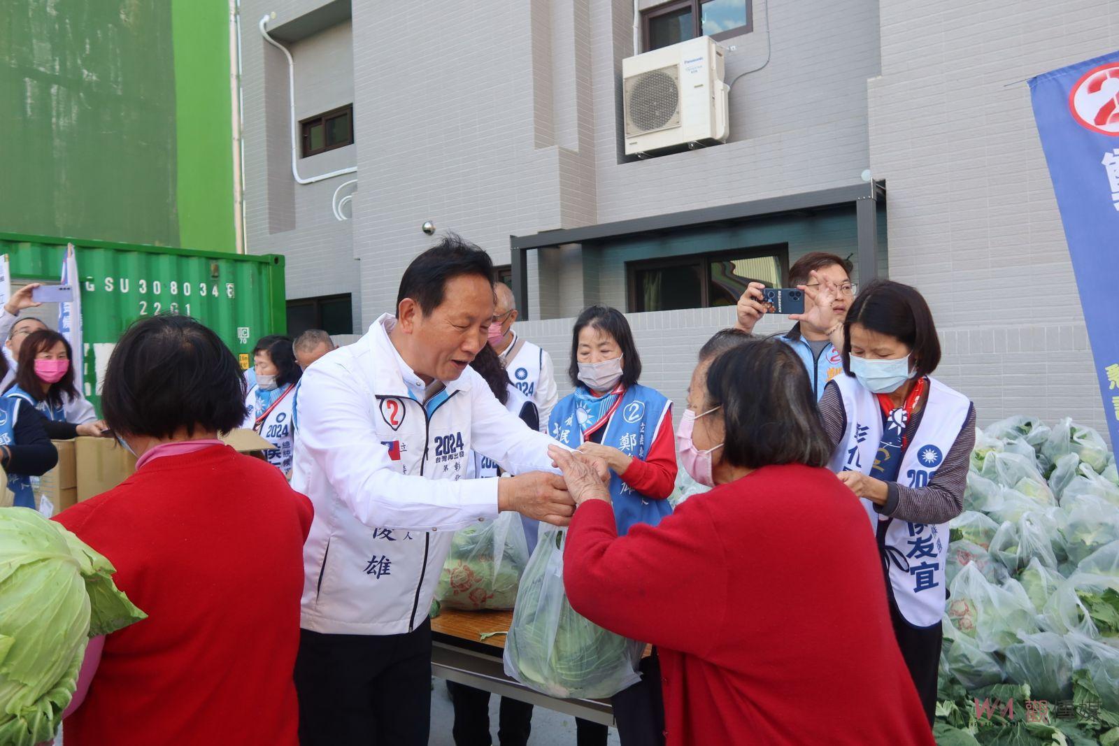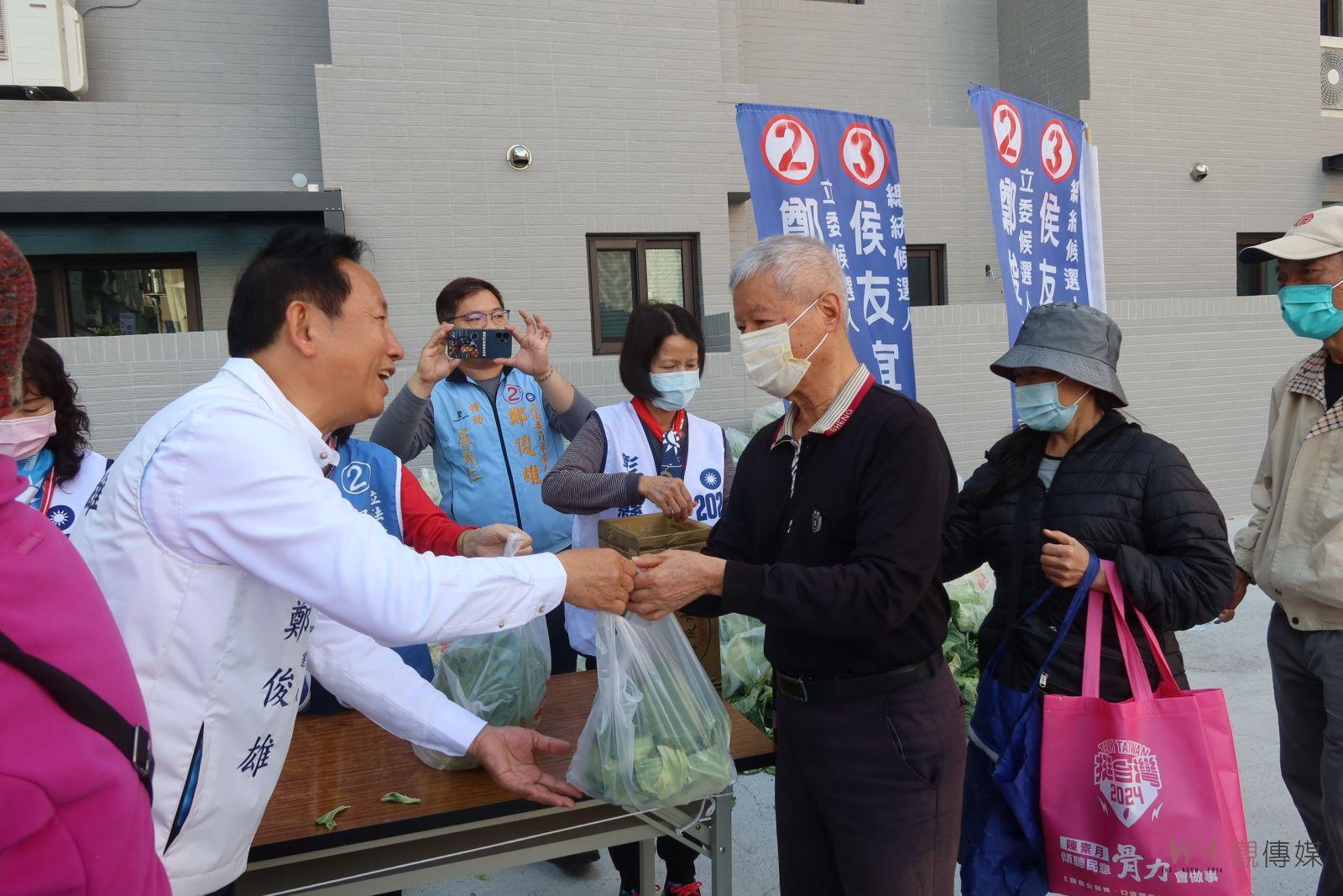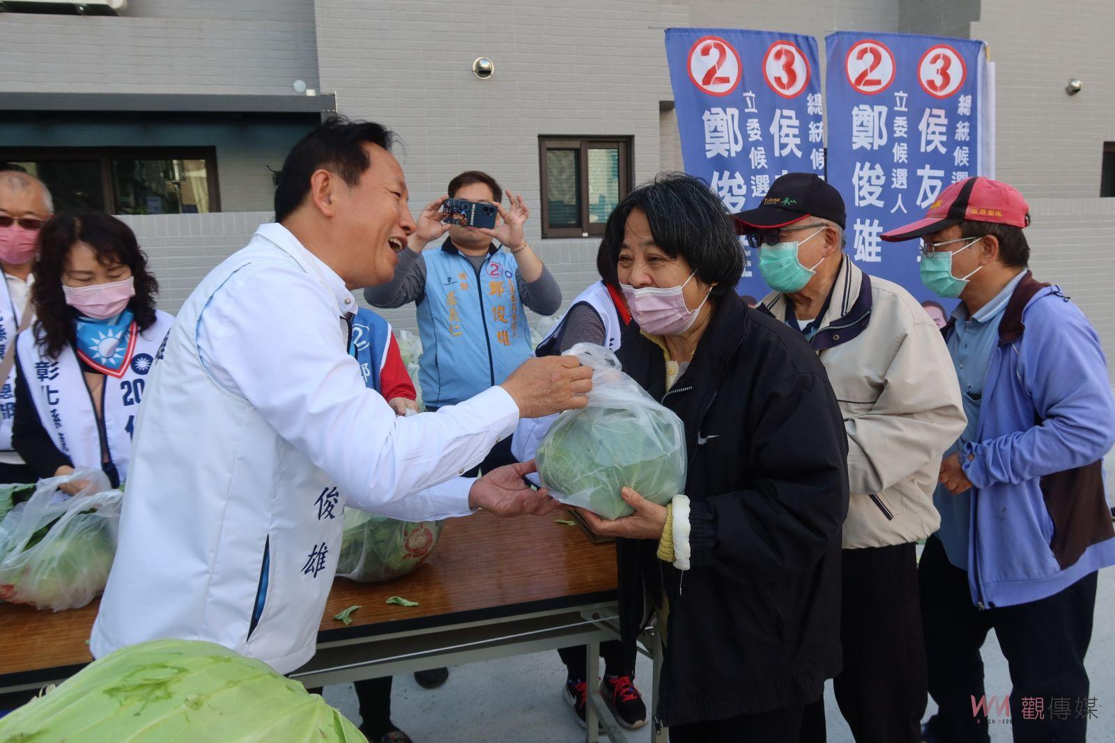(觀傳媒彰化新聞)【記者陳雅芳/彰化報導】最近氣溫下滑,高麗菜進入盛產期,彰化第四選區國民黨立委候選人鄭俊雄,今(9)日下午在競選總部發起「送菜迎侯康‧民生有靠山」活動,憑發票就能換1顆高麗菜,以實際行動力挺農民,鄭俊雄說,讓民眾做公益送愛心的同時,還可以享用美味農產品,發票將捐贈給弱勢社福機構,吸引大批民眾響應。