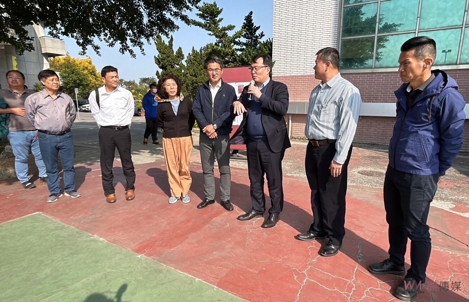 ▲立法委員劉建國今日邀請教育部體育署署長鄭世忠前往雲林斗六國中及林內國中進行實地會勘,深入了解學校對於運動場的需求。