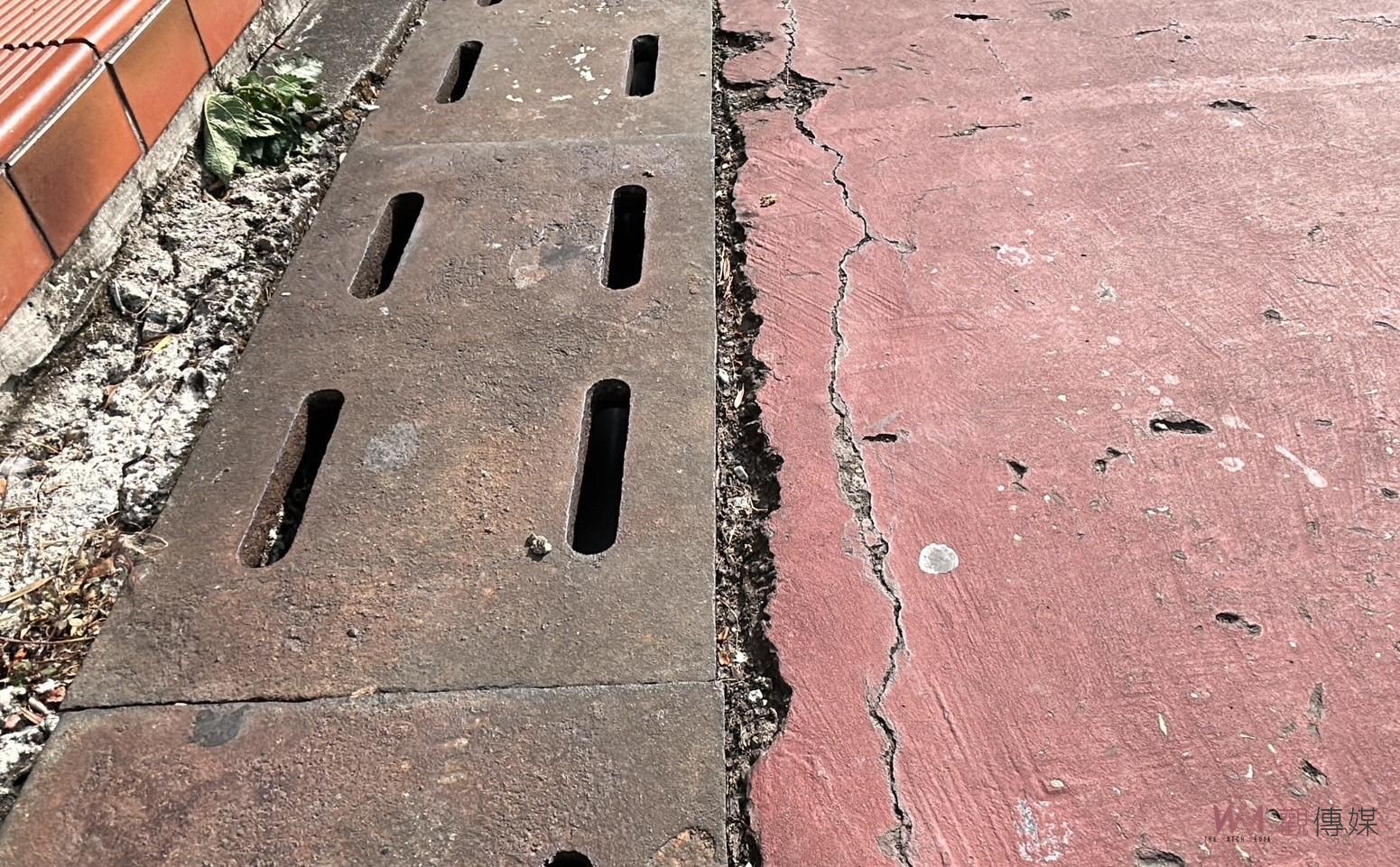▲會勘發現學校室外的運動場地板已出現嚴重裂痕,林內國中及嘉興國小同樣需要進行運動場整建工程。