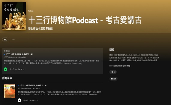 十三行「考古愛講古」在Spotify、Apple、Google、KKBOX、Firstory、SoundOn等平台皆可收聽,歡迎至https://ppt.cc/fAC8Vx訂閱。