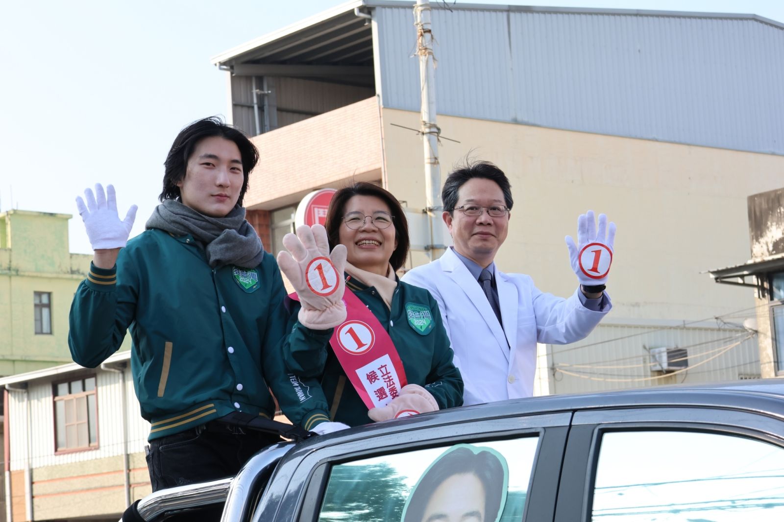 ▲選戰倒數最後一天,彰化第二選區立委候選人黃秀芳把握最後關鍵時刻拜票,展開全天候車隊掃街催票。