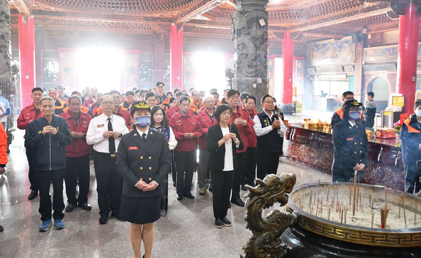 ▲彰化縣長王惠美頒發表揚203位在消防工作中表現優秀的人員,並率領眾消防幹部在普天宮進行祈福儀式,祈求風調雨順、國泰民安。