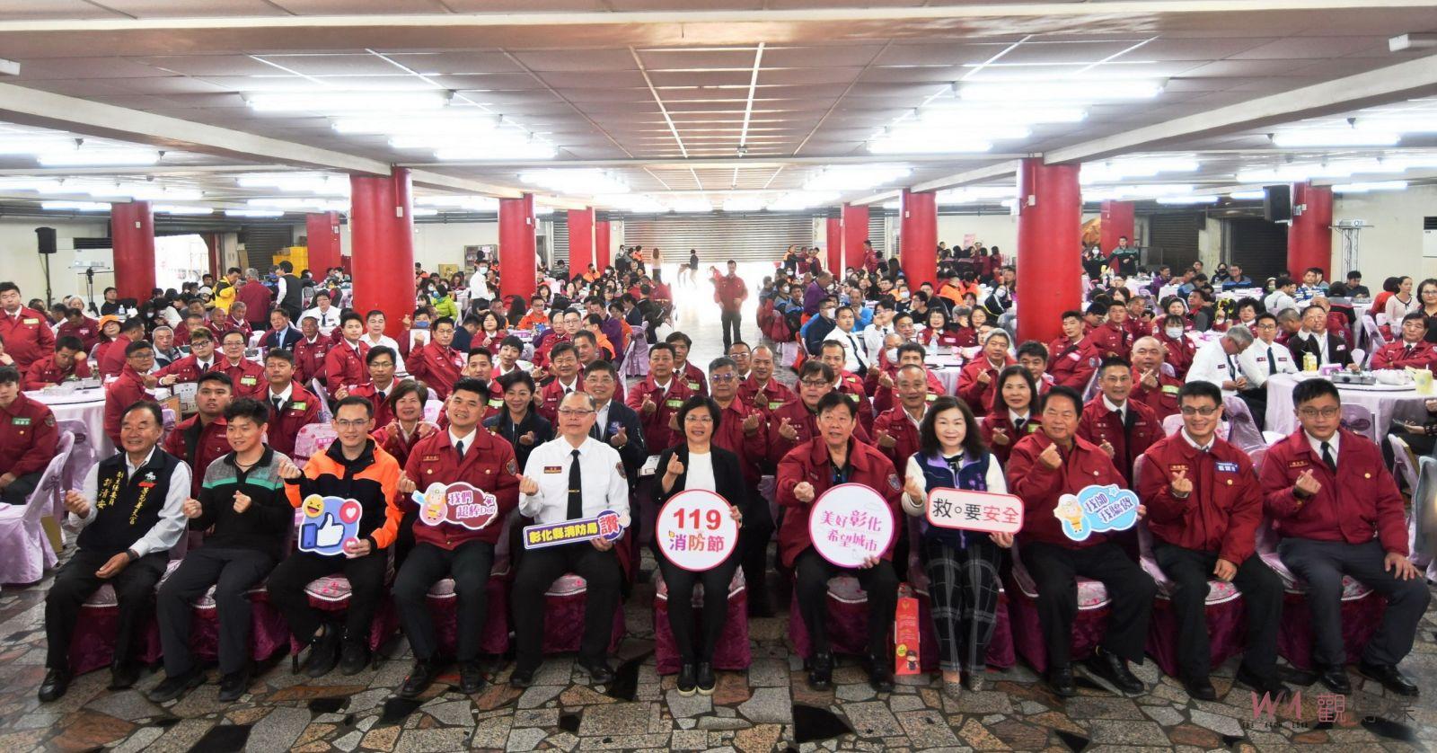 (觀傳媒彰化新聞)【記者陳雅芳/彰化報導】感謝有您們!119消防節前夕,彰化縣消防局提前於今(14)日下午,在芳苑普天宮舉行119消防節慶祝表揚活動,彰化縣長王惠美頒發表揚203位在消防工作中表現優秀的人員,並感謝警義消夥伴的貢獻,王惠美率領眾消防幹部在普天宮進行祈福儀式,祈求風調雨順、國泰民安。