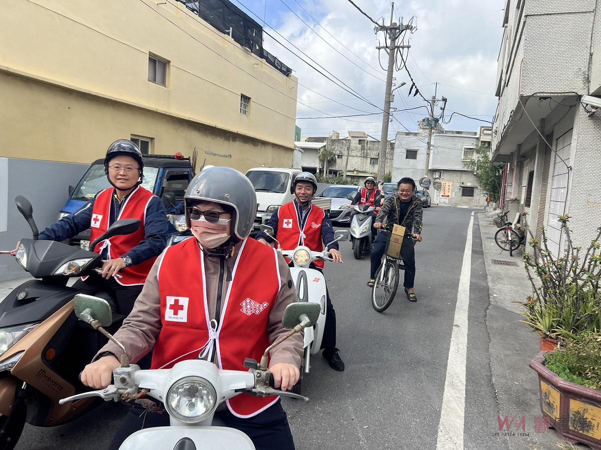 台塑企業麥寮管理部蔡建樑副總經理、台西鄉李文來鄉長及服務提供單位紅十字會邢雅苹副總幹事今(15)日化身「一日送餐員」,騎機車與送餐志工一同到低收入長輩及身障者家中送暖及送上春節紅包與清潔禮盒,暖胃又暖心傳遞對失能長者與身障者的關懷,同時感謝平日辛勤送餐的紅十字會志工們,為今年春節送暖活動拉開序幕。