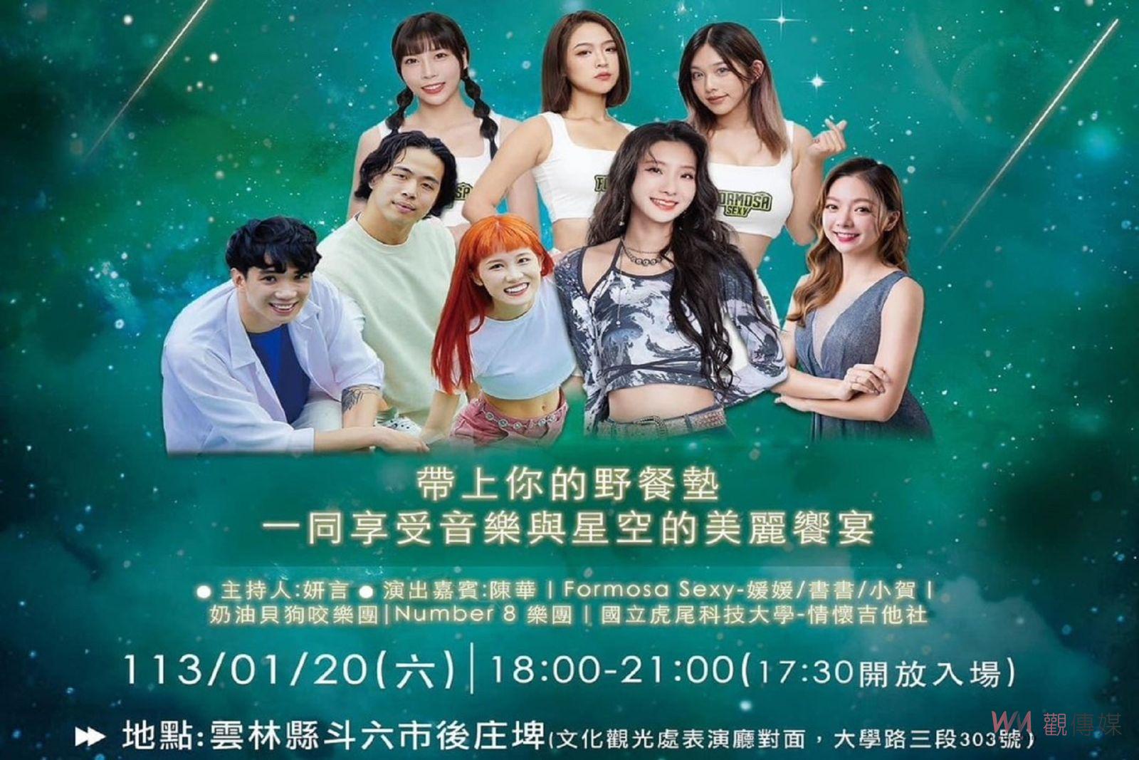 ▲2024雲林天空之島音樂會,本(1)月20日(星期六)晚上在斗六市後庄埤盛況演出,參加的民眾也可打卡換餐點。