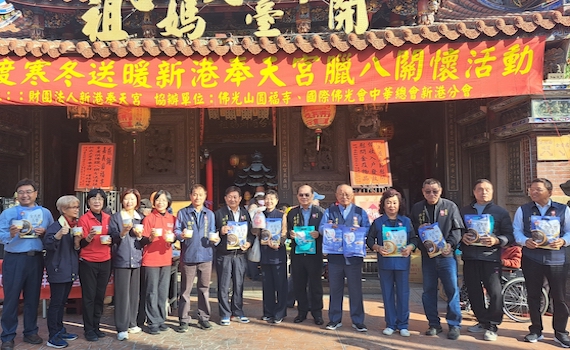 (觀傳媒嘉義新聞)【記者 惲 朋 /嘉義報導】嘉義縣新港奉天宮18日(農曆臘八)循例辦理關懷低收入戶生活,發放冬令慰問金給新港鄉及溪口鄉柴林村、林腳村低收入戶,奉天宮期待低收入戶,因而可以不畏寒冷過個溫暖年節。嘉義市佛光山圓福寺、國際佛光會中華總會新港分會配合準備數千份平安臘八粥,在奉天宮廟前廣場與民眾分享結好緣,讓大家吃在嘴裡暖在心裡。