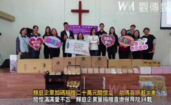 蔡長銘表示,企業的成功與社會進步息息相關,輝庭企業透過公益事業,履行企業社會責任,一直致力於改善弱勢社群的環境,實現社會共榮的願景;去年聖誕節,喜樂保育院曾至輝庭報佳音,這個感人的瞬間深深觸動了蔡長銘,激發他更積極參與喜樂的服務,他希望透過捐贈公司產品和關懷金,回應院生的生命鬥志,同時也呼籲更多企業參與公益事業,共同為社會盡一份心力。