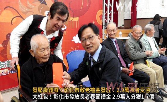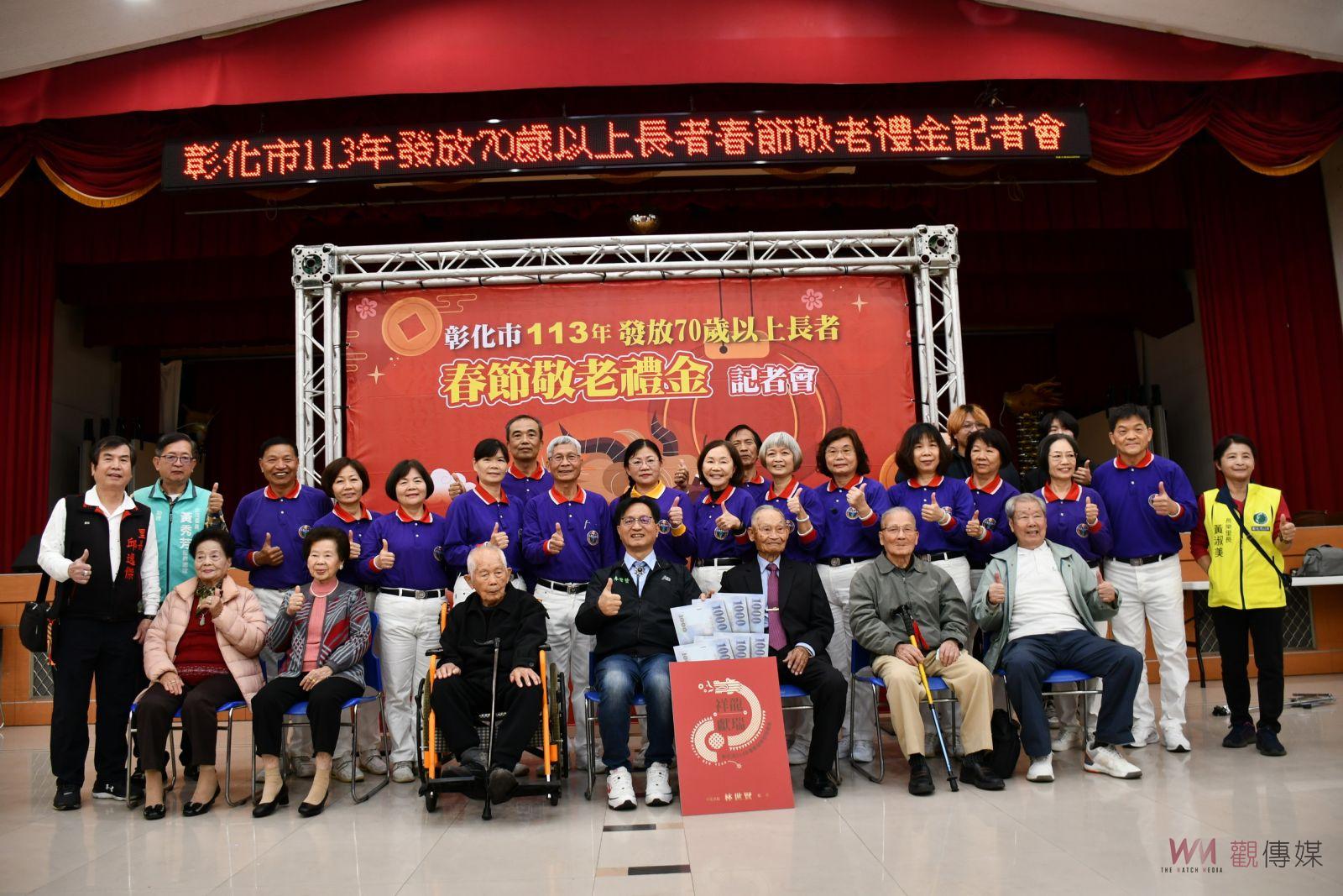 (觀傳媒彰化新聞)【記者陳雅芳/彰化報導】發壓歲錢囉!彰化市公所今(19)日在彰化生活藝文館舉行的春節敬老禮金記者會,市長林世賢宣布,下周起將發放70歲以上長者春節敬老禮金,每人6000元,今年可領取敬老禮金的長者共有2萬9073人,合計將發放總金額達1億7443萬8000元,這項福利措施已經連續實施27年。