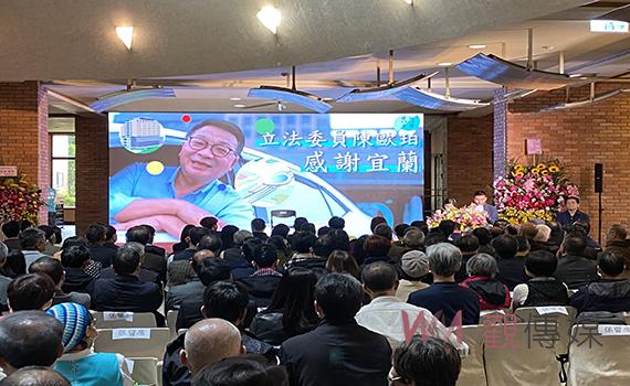 (觀傳媒宜蘭新聞)【記者陳俊傑/宜蘭報導】本屆立委任期即將於月底屆滿,蟬聯三屆立委,本屆選前宣布退選的立委陳歐珀今(21)日上午在宜蘭縣議會一樓大廳舉辦「感恩音樂會」,現場擠滿支持群眾,包括立法院長游錫堃、總統府秘書長林佳龍、立委陳亭妃、新科立委陳俊宇等人都到場參與。陳歐珀除了感謝鄉親朋友的相挺之外,也說自己從政歷程歷經狂風暴雨,但始終不畏風雨不畏磨難。他說,去年還被人家說是「詐騙」,即便去年8月 29日檢方已經偵查終結還清白,對手陣營還是一再汙衊。如今成功交棒,非常感謝鄉親對他的信任及一路以來的陪伴,即使卸任後也會在不同崗位上為宜蘭付出。