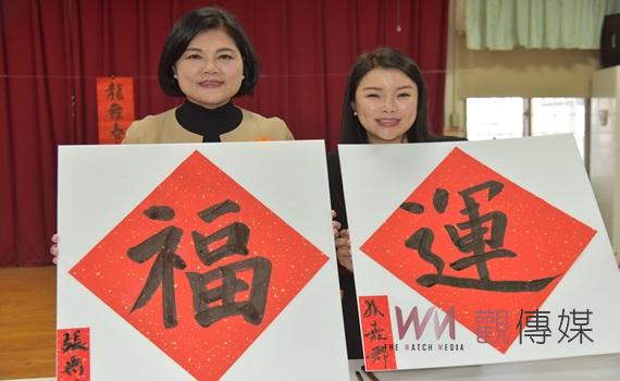 ▲現場揮毫,縣長張麗善祝賀縣民龍騰四海、福氣當前。