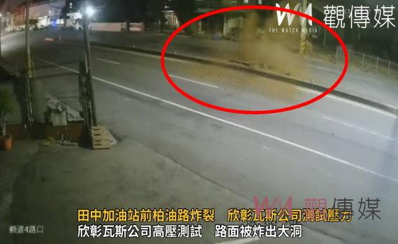 (觀傳媒彰化新聞)【記者陳雅芳/彰化報導】欣彰天然瓦斯公司正在彰化縣田中鎮進行管線埋設,20日深夜10點多,在中油加油站前,員集路一段內側道路突發生氣爆,路面被炸出大洞、塵土飛揚,由於氣爆前7秒剛好有車輛經過,幸好車輛沒被炸到,相當驚險,欣彰公司表示,欣彰公司會在進行管線修復後,會再進行測試後沒問題,全線再做供氣。