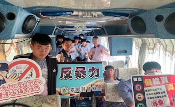 嘉義縣警察局表示,少年警察隊於113年1月起,分別至嘉義縣梅山、六嘉兩所國中及竹崎高中入班宣導外,特別由少年隊隊長何高成領軍,偕同組長黃顯堂與分隊長高明良,於學校上放學的校車上,或舉辦校外參訪時於遊覽車上「入車」宣導新作為,以輕鬆的方式告知學生常於「線上遊戲詐騙」實際案例教育,有在玩手遊的同學都覺得受益良多;