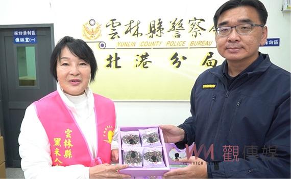 (觀傳媒雲林新聞)【記者蘇榮泉、洪佳伶/雲林報導】隨著年節的臨近,雲林縣黑米人協會理事長劉玉霞展現濃厚的關懷之心,於25日上午11點,在北港警分局舉行一場暖心的活動。理事長劉玉霞特地贈送兩百盒價值共76000元的「冷壓麻油黑米香」,以表達對北港地區辛勞的警務人員的慰勞之情。分局長陳宏平代表接受這份心意,並對這份暖心的贈禮表示讚揚。