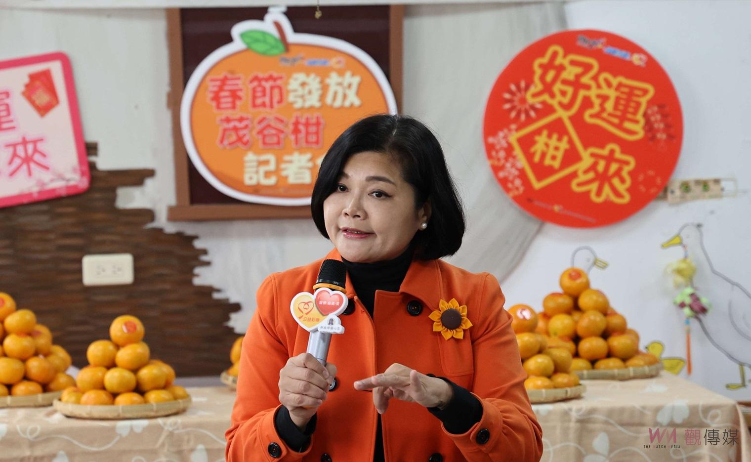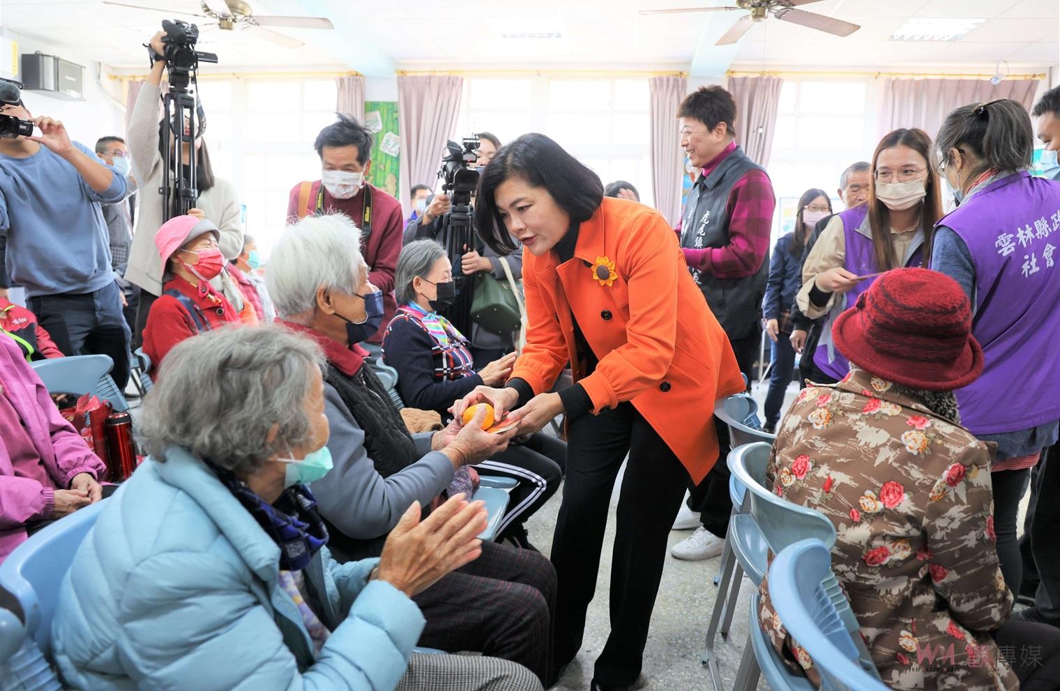 張縣長指出, 為鼓勵社區長輩走出戶外參與社區活動,解決子女因外出工作無法兼顧照顧長者飲食問題,增進社區老人身心靈健康,縣府運用本縣公益彩券盈餘分配款補助,推動長青食堂暨社區照顧關懷據點業務。本次購買來自古坑、斗六所產優質好運茂谷柑,今起發放全縣社區照顧關懷據點及長青食堂服務的長輩及志工,總計約2萬顆,每顆茂谷柑都貼上「好運柑來」祝賀文字,讓大家沾沾福氣,也讓本縣到社區照顧關懷據點以及長青食堂參與活動及共餐的長輩都可以感受到溫暖關愛與濃濃佳節氣氛。