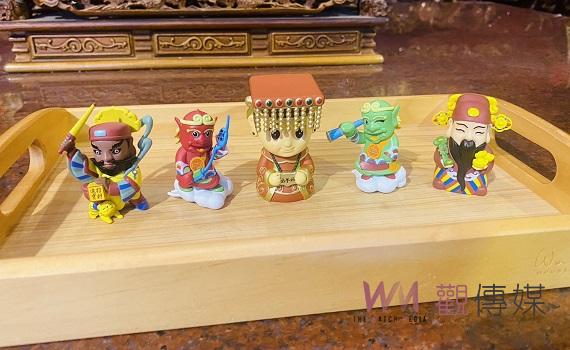 雲林西螺福興宮,長年致力於結合傳統信仰與現代活動,提供海、內外信眾豐富多元的宗教體驗,更以年輕、創意的風格享譽各界。今年農曆春節期間,福興宮獲得太平媽允筊首肯,將廣受好評的太平媽存錢筒公仔、手持望遠鏡版千里眼將軍、手持無線電版順風耳將軍等3款經典Q版神像製成扭蛋公仔,同時也獲得文財神、武財神首肯,將兩位財神爺維妙維肖的神情與姿態融入Q版公仔之中。