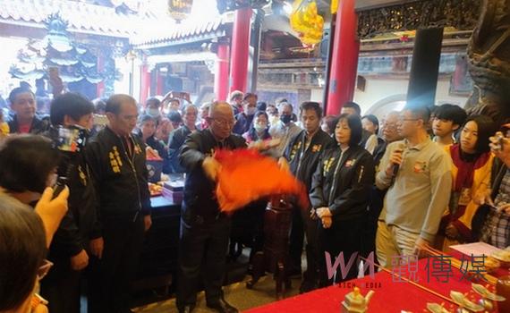 ▲新港奉天宮大年初四依例擲筶抽出「國運」籤,董事長何達煌解籤是中上簽。