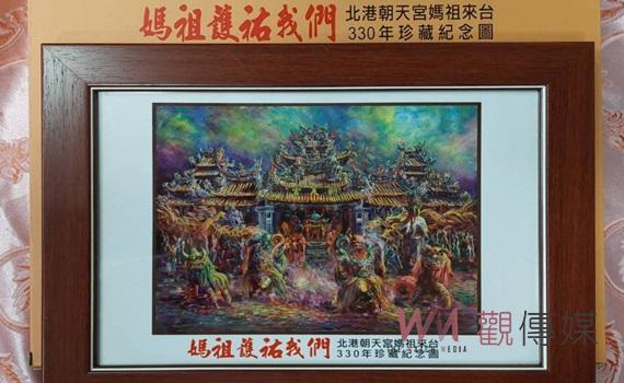 ▲北港朝天宮董事長蔡咏鍀親自接受了法國國際知名畫家陳明順大師,這份珍貴的獻禮。