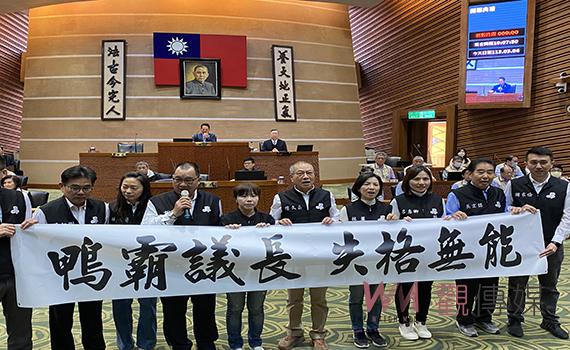宜蘭縣議會今日召開第20屆第7次臨時會,正當會議剛要開始,縣長林姿妙以貴賓身分致詞時,民進黨議會黨團成員排排站拉起寫著「鴨霸議長 失格無能」的白布條在主席台前抗議,此舉立刻引起在場媒體關注,紛紛前往拍照。黨團總召陳文昌對媒體表示,去年底議會審議宜蘭縣政府113總預算時,沒有顧及黨團協商以粗暴方式動用表決權強行包裹表決,使得議會失去監督制衡的能力與責任,讓議員愧對選民。