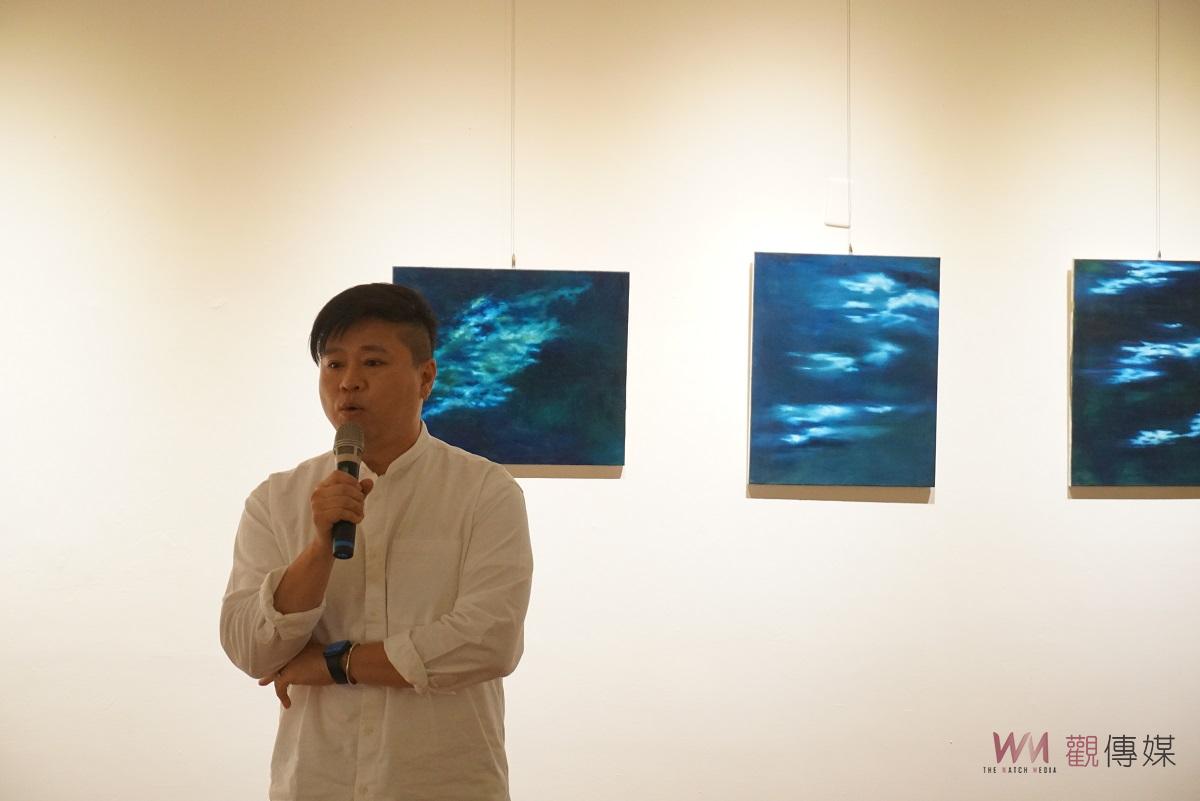 ▲「山/YAMA曾景斌創作個展」即日起至3月29日在虎科大第二校區綜三館一樓展覽室展出。藝術家曾景斌致詞。