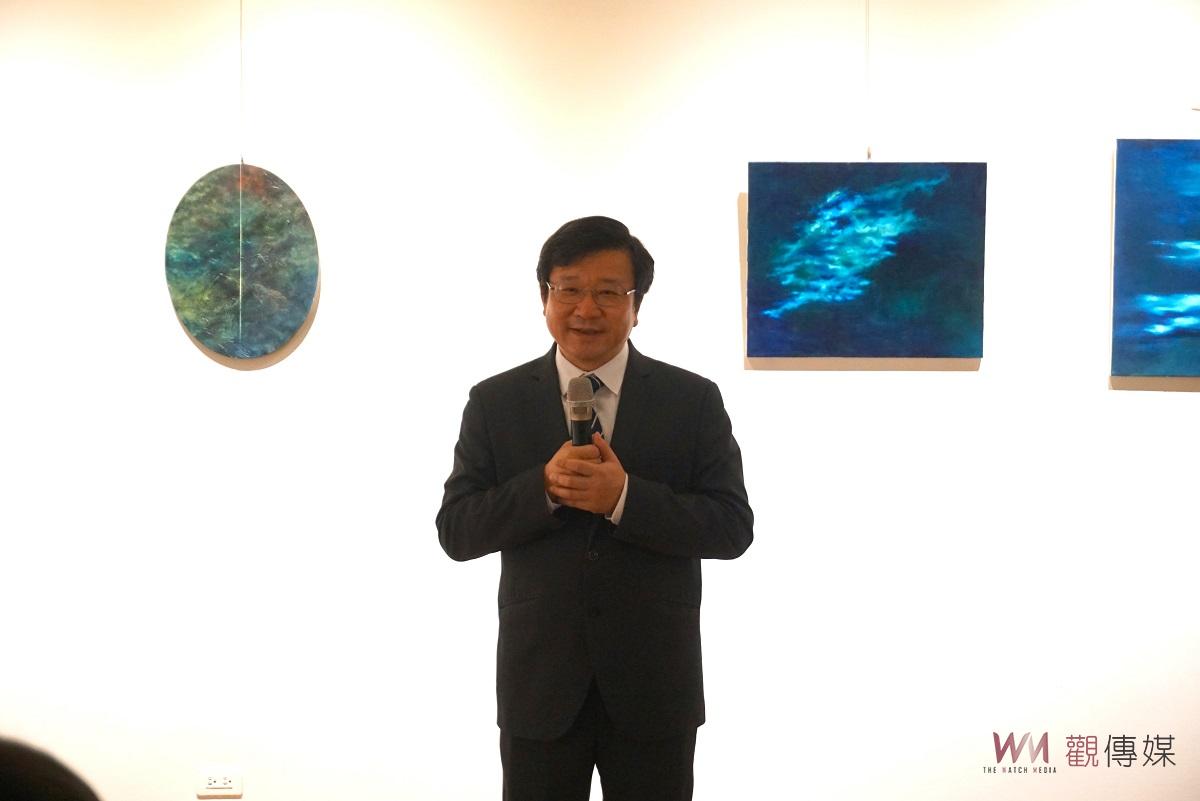 ▲「山/YAMA曾景斌創作個展」即日起至3月29日在虎科大第二校區綜三館一樓展覽室展出。虎科大校長張信良致詞。