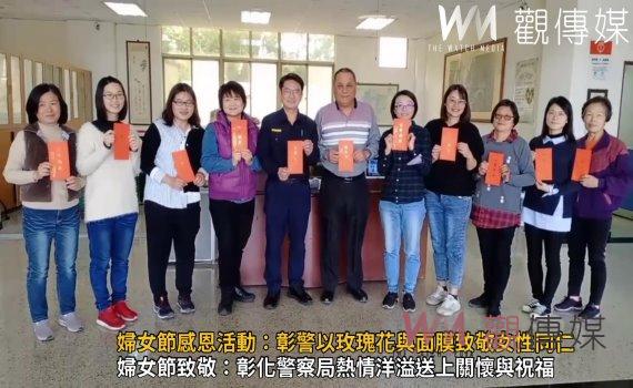 (觀傳媒彰化新聞)【記者陳雅芳/彰化報導】今(8)日,正值國際婦女節,彰化縣警察局局長陳明君特地準備了一場溫情的感恩活動,以表彰在警務工作中發揮重要作用的女性同仁們。活動現場,局長陳明君親手送上玫瑰花和麵膜,並備有美味的爆米花,將最誠摯的祝福送到每位女性同仁手中,營造了溫馨歡樂的氛圍。