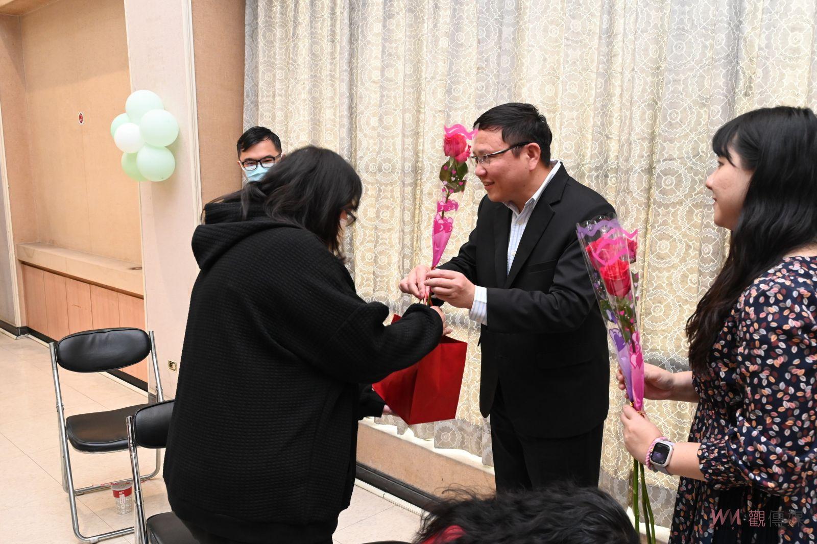 ▲今年的婦女節活動中,彰化警察局局長陳明君特意贈送了象徵堅強與美麗的玫瑰花和麵膜,將最誠摯的祝福送到每位女性同仁手中。