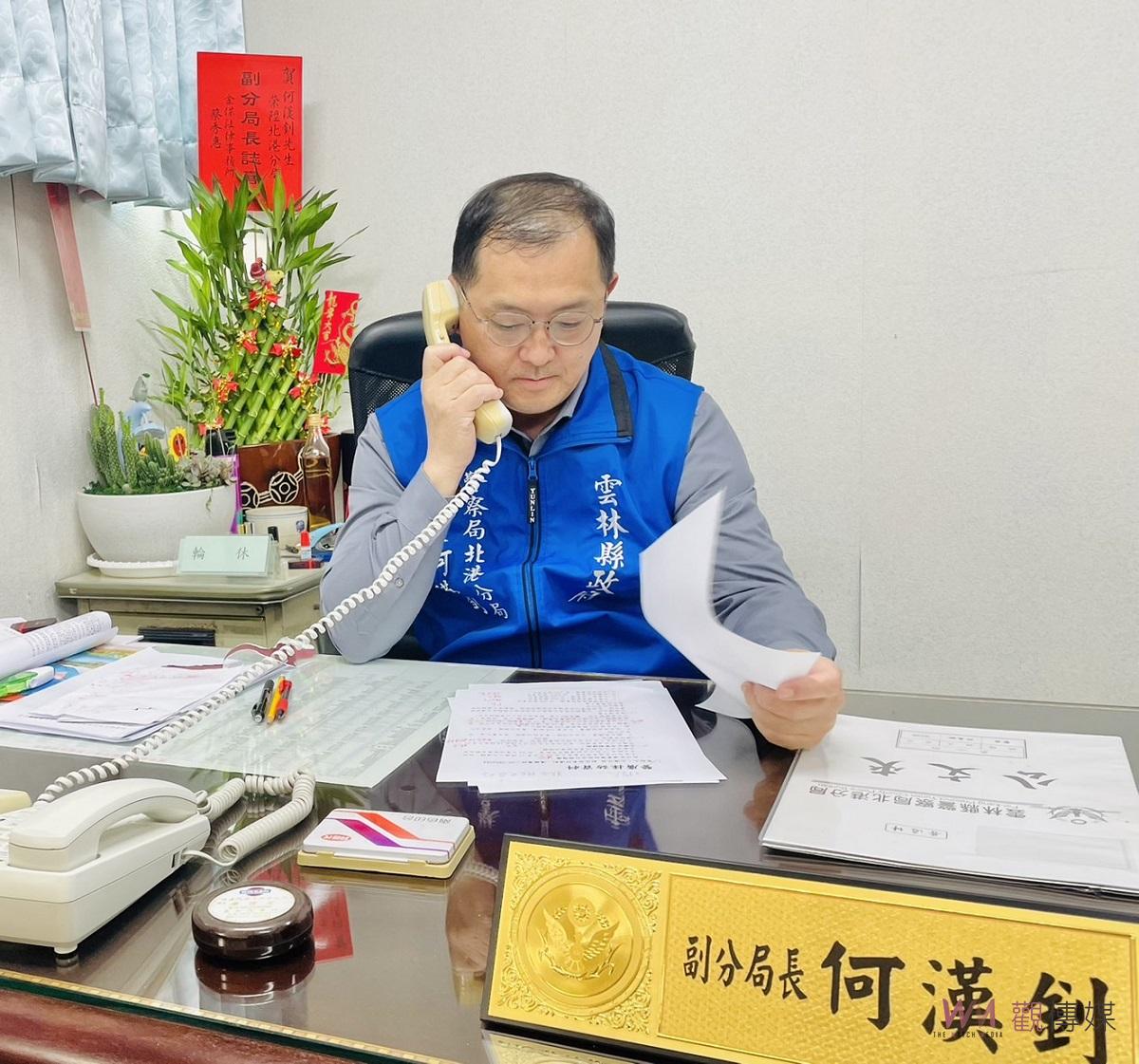 ▲北港警分局副分局長何漢釗接受警察廣播電台採訪,籲防竊暴詐、遵管制。