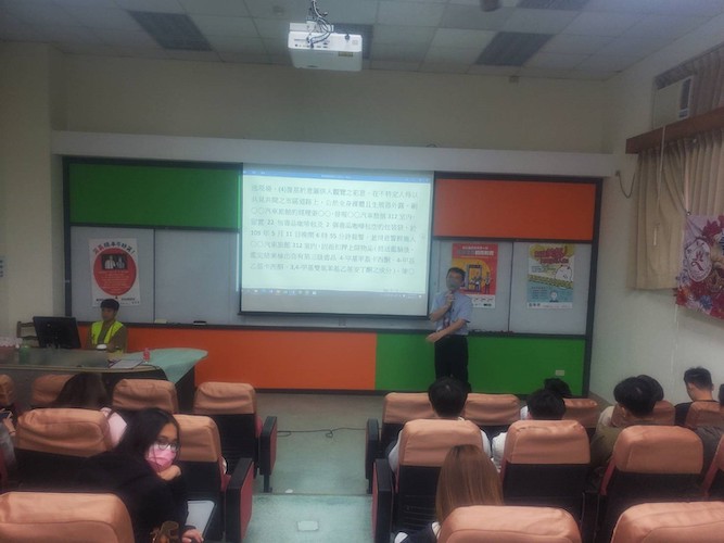 嘉義地檢署為即將步入職場的大專院校青年學子進行反毒教育宣導,及建立廉潔工作文化與廉潔家園等觀念。特敦請詹喬偉檢察官,以過往偵辦刑事案件作為案例與青年學子們分享與說明。