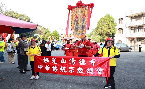 北港朝天宮及鹿港護聖宮的北港媽和玻璃媽也蒞臨陪同日南天后宮的環保媽一同遶境,並接受信眾的祭拜及鑽轎底,用以其祈福求安;佛光山清德寺慧龍師父也率中華傳統宗教總會喜慶樂團前來共襄盛舉,同時為了體恤年長者遶境辛苦,鹿港護聖宮還支援玻璃媽祖船、玻璃福德船以及台灣牛等3台造型莊嚴的花車,為這次的「環保媽祖文化節」增添更多的亮點。(圖/記者石振賢翻攝.2024.03.16.)