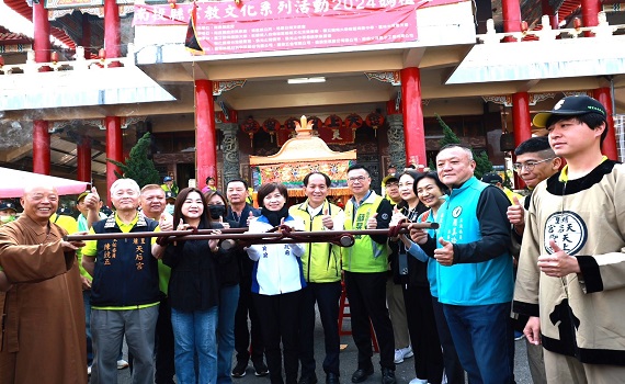 (中彰投新聞)【記者石振賢/南投報導】埔里日南天后宮「環保媽祖文化節」16日上午隆重登場,縣府民政處長林琦瑜、立委馬文君、縣議員林芳伃、陳宜君、蘇昱誠、吳國昌、埔里鎮長廖志城都出席參與。管理委員會主委陳鏡正邀請與會貴賓一起開香祈福,並以環保方式點燃起馬炮後,展開全程6公里的徒步遶境祈福,大批信眾隨行,沿途民眾敬備香案祈福,場面盛大。