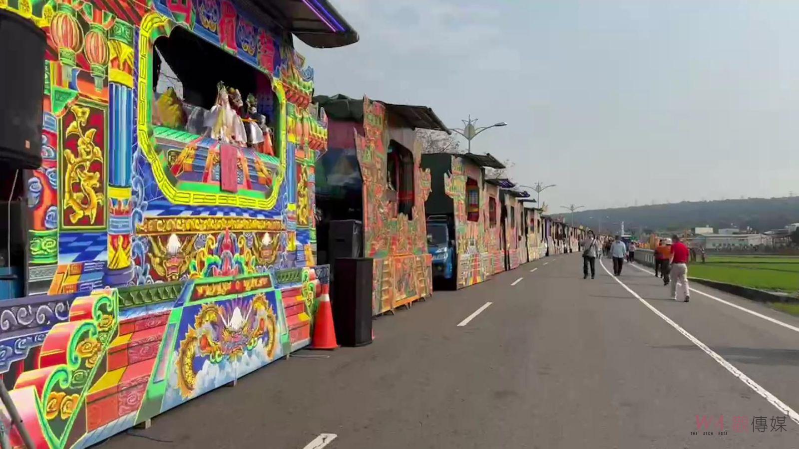 (觀傳媒彰化新聞)【記者陳雅芳/彰化報導】超級壯觀!彰化芬園鄉縣庄村福德宮宮慶大典的布袋戲團酬神演出,近年成為地方盛事,今天有來自各地共80棚的布袋戲團一起酬神為土地公祝壽,數量破以往紀錄,戲棚排列長達近1公里之遠,相當壯觀。