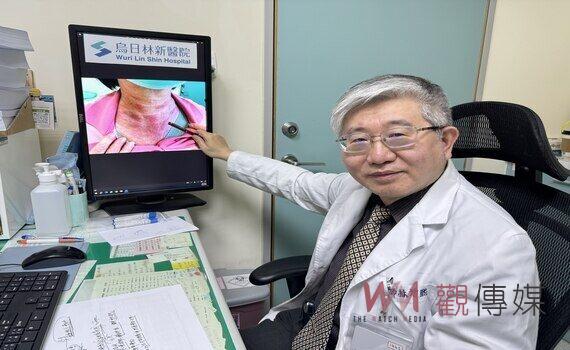 (觀傳媒中彰投新聞)【記者廖妙茜/台中報導】台中一名60歲黃姓婦人有乳癌家族史,2年前罹患乳癌第1期於他院進行右乳切除,持續追蹤1年後,突然在臉部、前胸、上背及手關節處莫名出現紅疹,全身無力且生活無法自理,需要由家人協助洗澡穿衣,當時就醫時一度以為是藥物疹,停用乳癌用藥後仍未好轉,經由烏日林新醫院血液腫瘤科與過敏免疫風濕科進行血液檢查、切片檢查及神經內科進行肌電圖檢查後,才發現原來是乳癌引起了皮肌炎,癌細胞更擴散至肝臟、淋巴,所幸配合治療將腫瘤控制良好,皮肌炎產生的紅疹才通通消失!