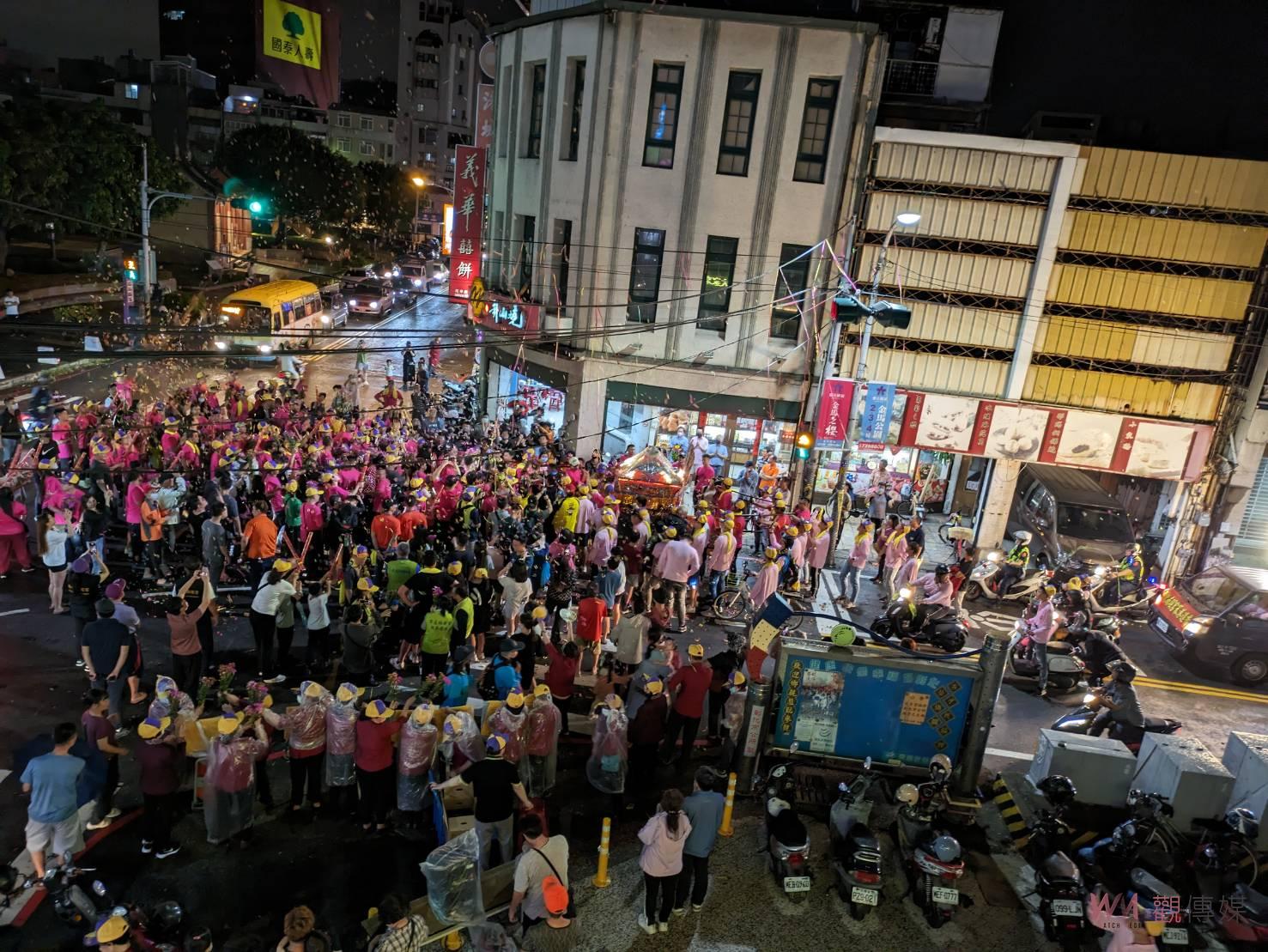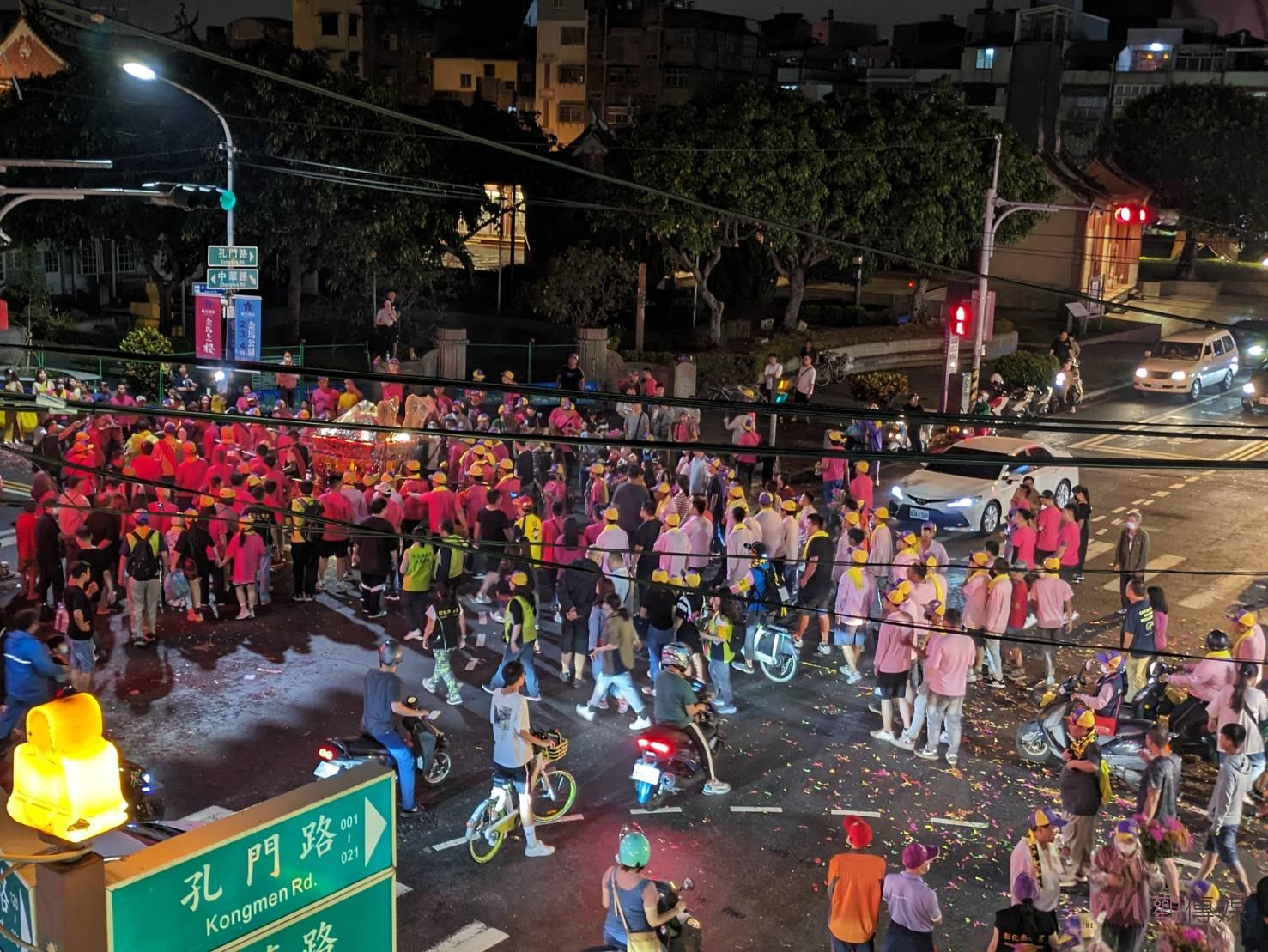 ▲南瑤宮笨港進香隊伍回鑾,晚間彰化市區遶境時,上千名信眾群集民生路與中華路口跪拜獻花迎駕,感恩媽祖的庇佑與祝福。