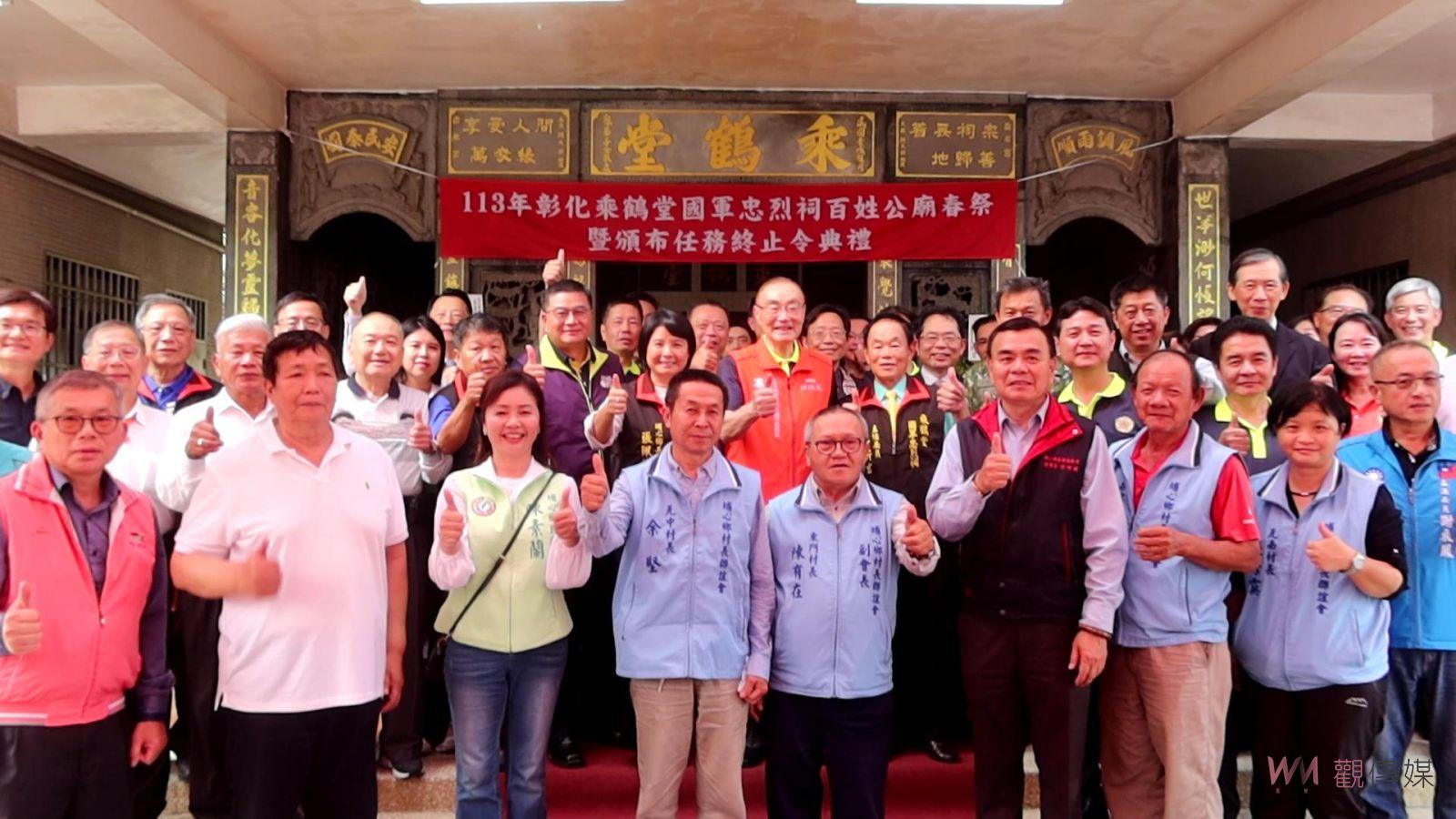 埔心鄉民間國軍忠烈祠與百姓公廟合建,正式名稱為「乘鶴堂國軍忠烈祠百姓公」,馮世寬今(1)日依國家忠烈祠祭祀規儀,由憲兵遞交香柱、花圈、鮮果、水酒等供品,率領彰化、雲林的榮民服務處、後指部及憲兵單位主管,埔心鄉長張佩瑩和各級民代、鄉農會總幹事張旗聞、乘鶴堂管理委員會主任委員許新吉、地方士紳50餘人,祭拜埋骨在乘鶴堂的276名國軍英靈。