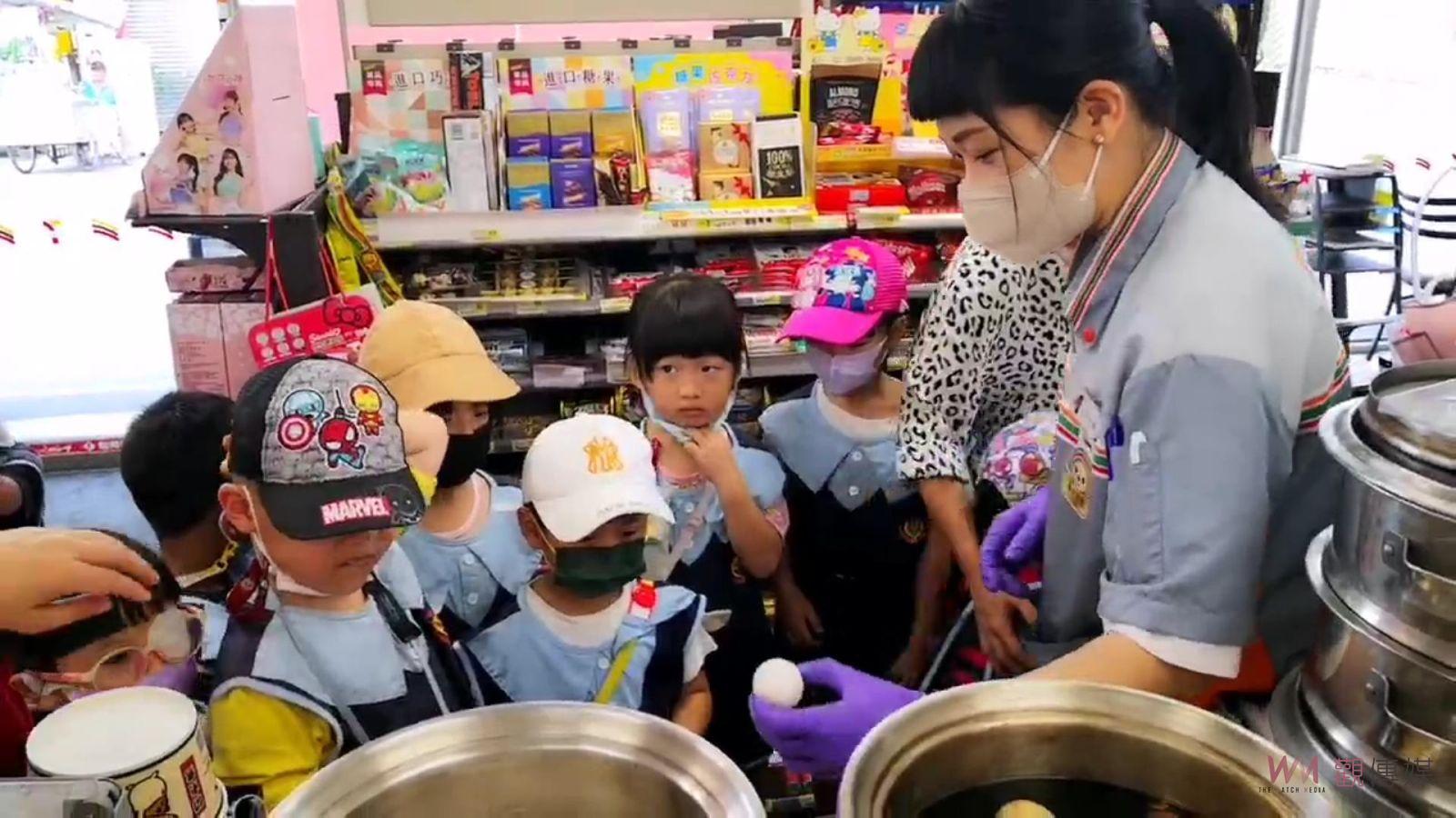 北斗國小校長游美雯說,北斗國小附幼的孩子,因為在112學年度第1學期進行香菜課程時,曾經製作過香菜蛋糕,因而對蛋產生了極大的興趣,所以開始研究起與「蛋」相關的各種知識,而這次很幸運的可以跟在地的7-ELEVEN店家合作,讓孩子能走進店裡,學習如何製作茶葉蛋,並配合兒童節進行「小店長體驗活動」。