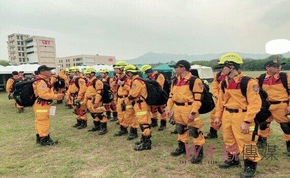 消防局表示,隊伍昨日上午在特搜大隊完成動員集結後,立即移地至消防署訓練中心倒塌建築物震災搶救訓練場進行搜救演練;另結合隊伍管理、醫療照護及後勤供給等能力,模擬搜救隊在災區執行搜救任務的程序,因應實際救災情況。