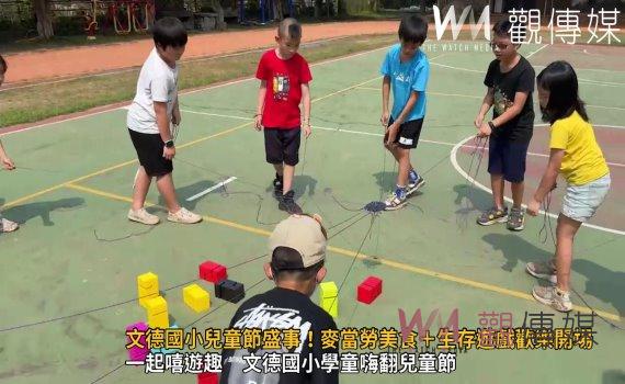 ▲文德國小舉辦兒童節慶祝活動,為學生們帶來了美味的麥當勞餐點和刺激的生存遊戲,讓整個校園彷彿置身野外,充滿歡樂聲和童趣橫生。