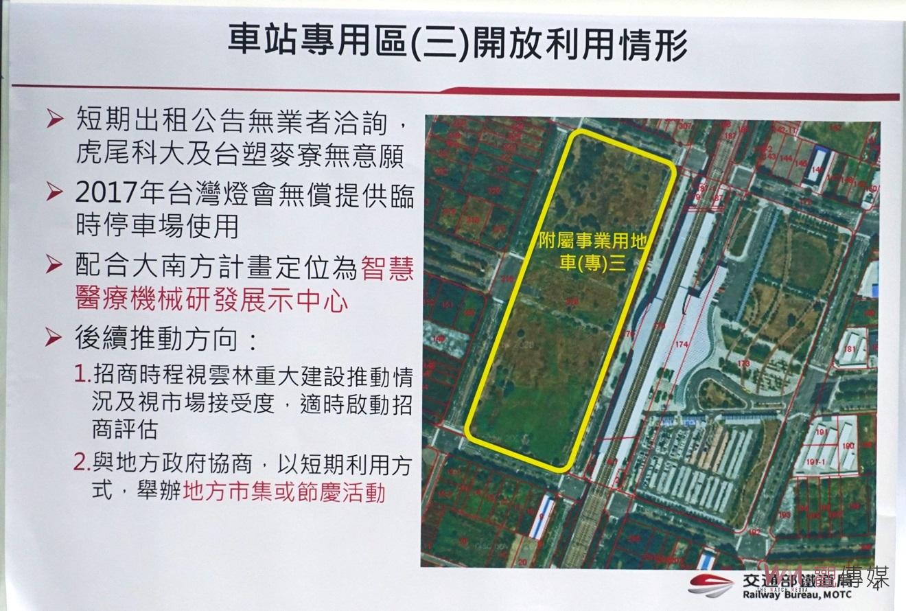 另外,張嘉郡表示,雲林站因旅客眾多,原設計單一出口的前站出口已明顯不足,尤其尖峰時間及連續假期造成附近交通壅塞,聯外動線混亂,影響乘客的使用品質,她建議交通部協調鐵道局,開發後站(西側)6公頃土地,作為疏導交通壅塞與規劃行車動線的腹地使用。