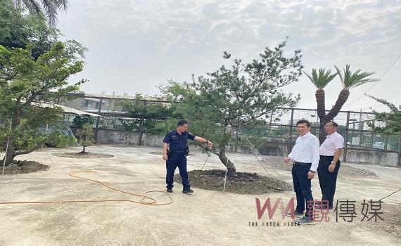 (觀傳媒雲林新聞)【記者洪佳伶/雲林報導】位於大屯社區中心的虎尾分局大屯派出所,是維護整個大屯地區的治安及服務民眾,也是大屯地區民眾心中最重要的地標。昔日,派出所周圍綠樹成蔭,鳥語花香,是居民們愜意漫步的必經之路。然而,受氣候異常與病蟲害侵擾,多棵樹木枯萎凋零,原本清幽的派出所頓時黯然失色。雲林縣議員陳俊龍及地方民意代表紛紛出面關心,並積極爭取經費。