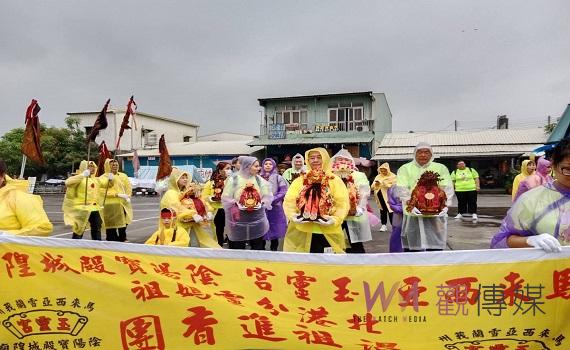 (觀傳媒雲林新聞)【記者洪佳伶/雲林報導】北港朝天宮迎媽祖即將於農曆三月十九、二十日盛大登場,25日馬來西亞玉靈宮分靈北港媽祖回娘家,由宮主洪秀麗率30信眾,迎請媽祖及神明共18尊神尊陪同回北港朝天宮謁祖,來自馬來西亞有80多歲首次來台及4歲小朋友等信眾,一行人不畏風雨,穿著雨衣陪媽祖回娘家了,由北港朝天宮副董事長蘇健榮迎接。