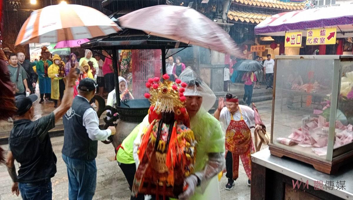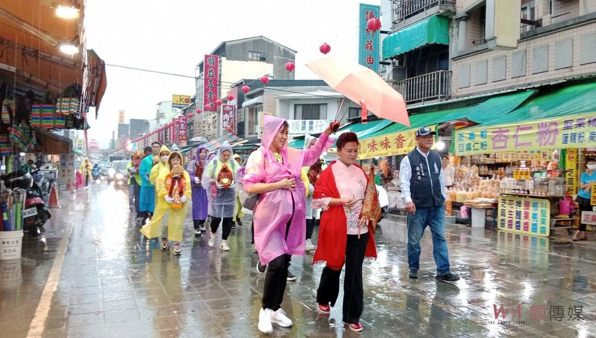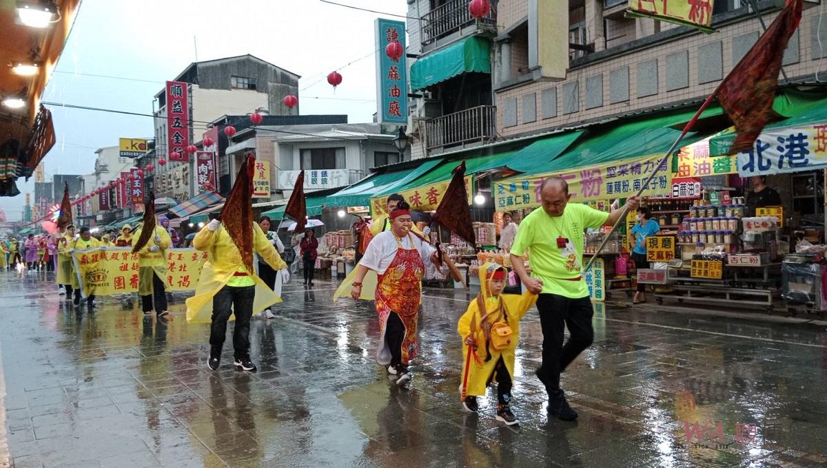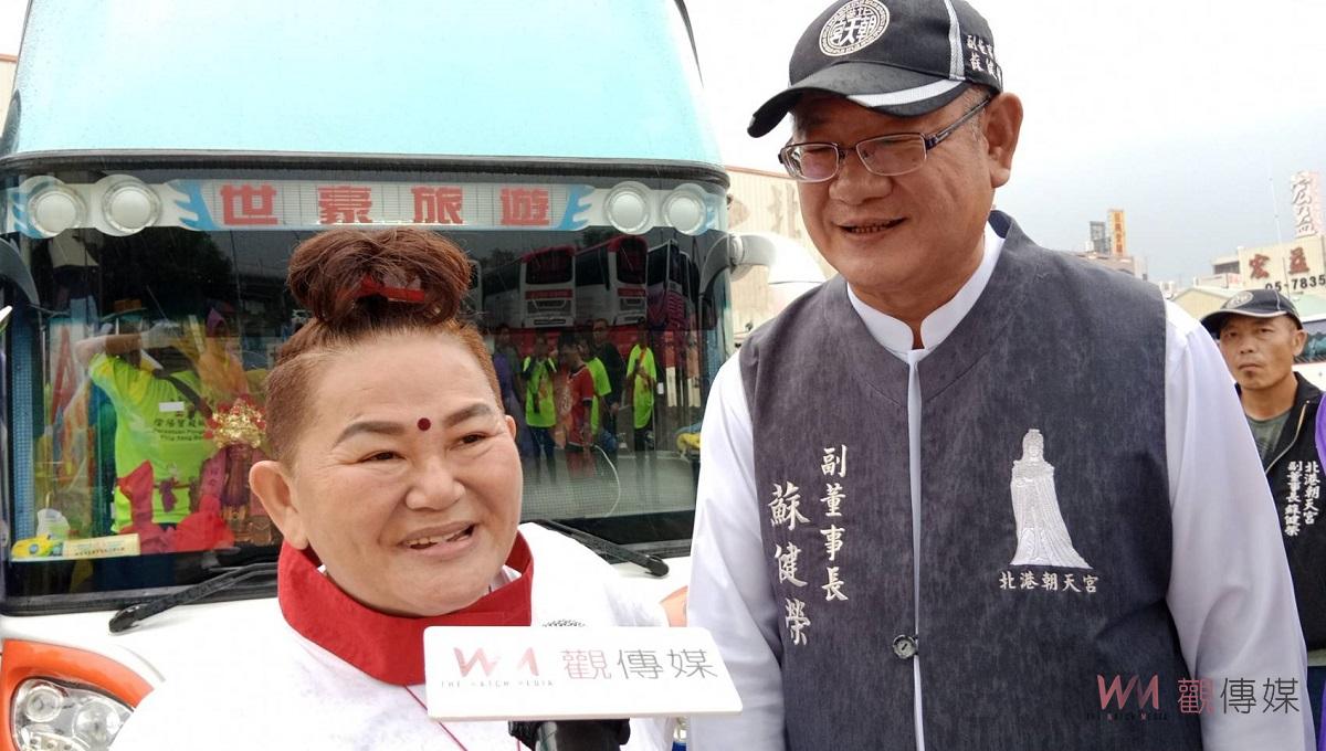 ▲一行人不畏風雨,陪媽祖回娘家了,由北港朝天宮副董事長蘇健榮迎接。