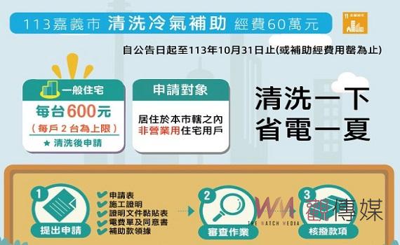 ▲「清洗一下,省電一夏!」嘉義市政府環境保護局自即日起推出「113年一般住宅空調清洗維護補助計畫」。