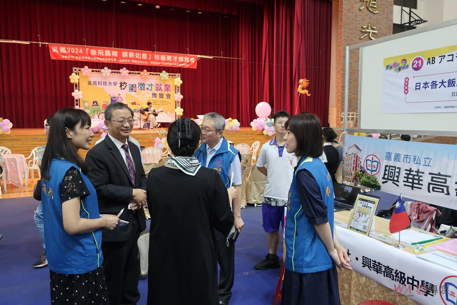 (觀傳媒嘉義新聞)【記者邱嘉琪/嘉義報導】吳鳳科技大學30日舉辦「2024龍飛鳳翔 順薪如意」校園徵才博覽會,有包括科技業、製造業、觀光餐旅業、資訊業、幼保業、物流業及軍公部門等近60家廠商參與,並提供近3000個職缺,其中亦有日本公司到場徵才,提供有志前往日本發展的同學一條就業道路。