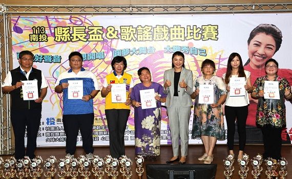 許縣長指出,縣府與微微笑樂齡生活推廣協會共同舉辦這次的縣長盃歌唱大賽,非常謝謝協會總監張賀賀長年來在南投縣深耕推廣歌唱教育,甚至從國小就開始鼓勵更多的孩子去找出表演及藝文方面的興趣,進而展現他們的才華,另外,更多社區的長輩也因為參加學習唱歌,真正重新展露出他們自信的笑顏,這次的比賽有上百位老少朋友來參加,大家都非常的用心妝扮,在服裝上也非常的講究,可以看得出來大家對於比賽的重視。